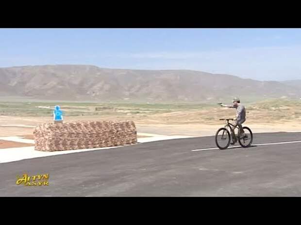 Президент Туркменистана стреляет по мишеням с велосипеда